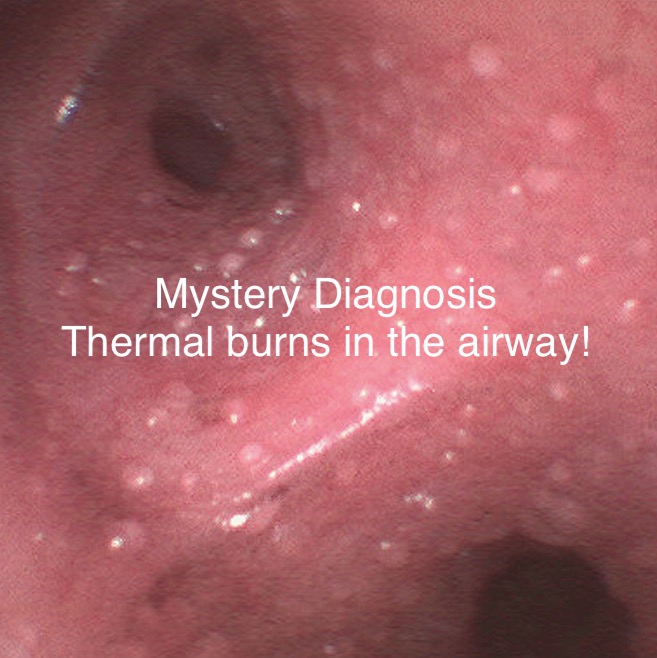 Mystery Diagnosis: Thermal Burns in the Airway! Gallery Mystery Diagnosis: Thermal Burns in the Airway! By Nicole Angemi|2024-10-02T14:15:26-04:00September 11th, 2023|The Gross Room, Mystery Diagnosis, GAMES| Read More 9